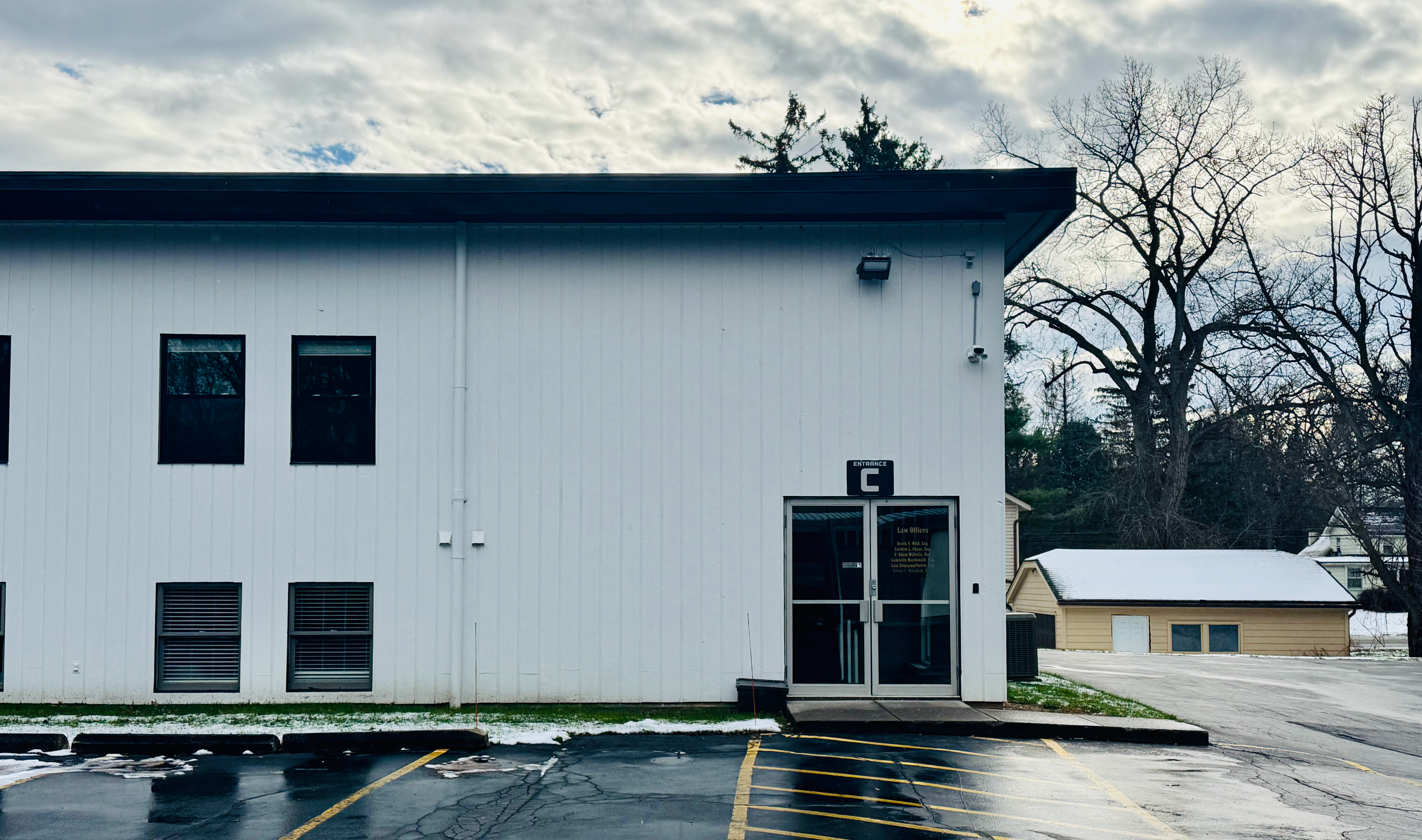 Our office is located at 2480 Browncroft Blvd. Rochester, NY 14625, and the office entrance is in the very back of the building. (It is the last door on your left.) Drive past Entrance A. Drive past Entrance B. Look for Entrance C and the door with a "Law Offices" sign on it. We will be waiting downstairs for you.